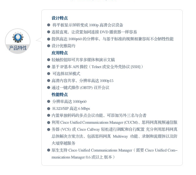 思科腾讯通:是RTX腾讯通的一个插件。它是思科和腾讯公司共同推出的集成原RTX腾讯通的即时通信界面和思科企业级统一通信服务的解决方案。原有RTX腾讯通用户的使用习惯不变。用户通过思科腾讯通可以了解联系人状态,拨打高清视频和音频电话,召开在线会议或视频会议,使用可视语音邮件等等。如下最新款 CTS-SX20PHD2.5X-K9 2.5x 1080p高清镜头视频会议终端